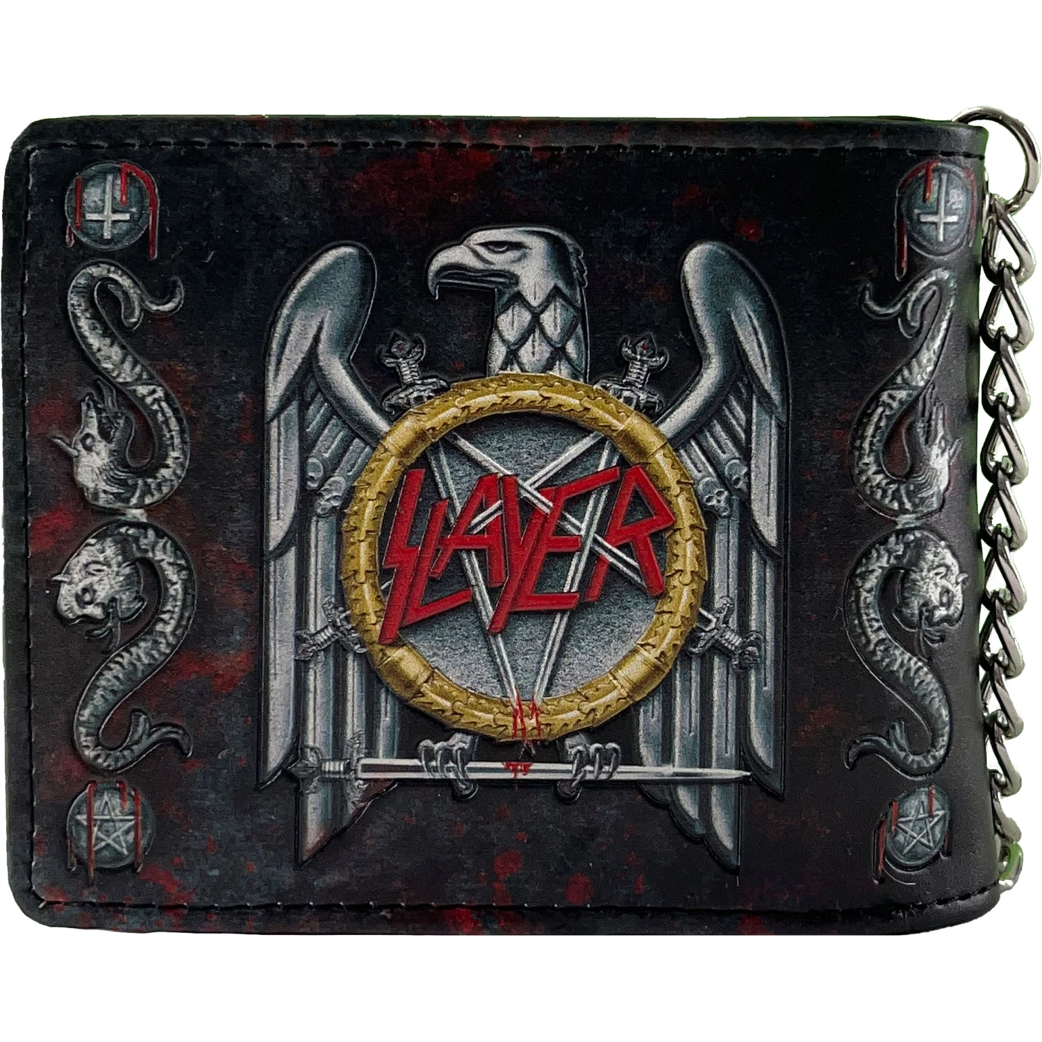 Pay homage to the thrash metal gods with this officially licensed embossed wallet, designed by Nemesis Now’s fantastic design team! This wallet is emblazoned with the band’s distinctive eagle and swords logo which instantly brings to mind Slayer’s fast tremolo picking, double bass drumming and shouted vocals. Perfect for keeping your money safe when you’re headbanging!